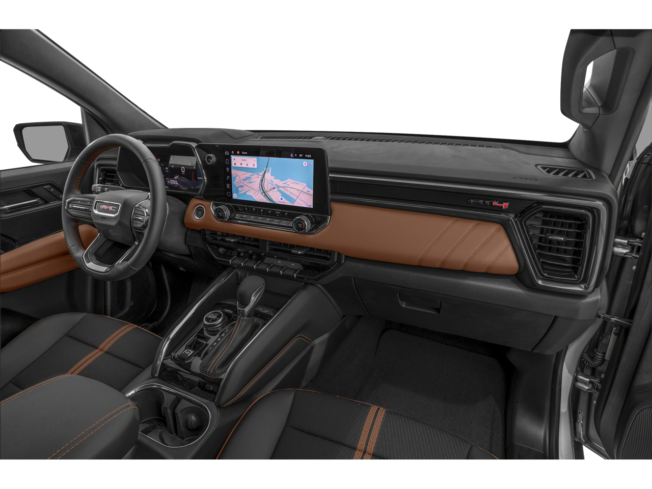 The Canyon AT4's rugged exterior is complemented by a well-appointed interior, featuring premium materials and advanced technology. Enjoy the convenience of dual-zone automatic climate control, wireless smartphone integration, and a premium 11.3-inch infotainment system. The available Canyon Safety Plus Package further enhances your driving experience with features like Automatic Emergency Braking, Front Pedestrian and Bicyclist Braking, and Blind Zone Steering Assist.